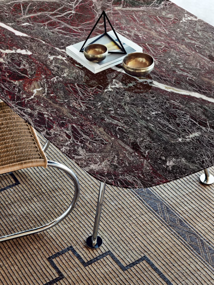 Conceived by Italian architect and designer Piero Lissoni, the Grasshopper Table (2018) marries slender surfaces with thin high-performance steel. Its lightweight appearance, inspired by the grasshopper’s anatomy, elevates any home or office. Available in two marble finishes and round and rectangular shapes in a variety of sizes. Made in Italy.